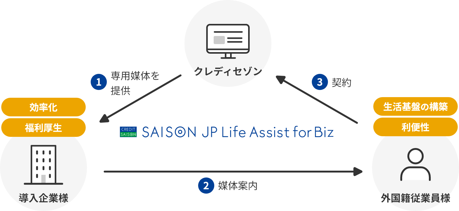 SAISON JP Life Assist for Bizでは、外国籍の方でも安心してお申し込みいただけるクレジットカードや部屋物件のご紹介、SIMカードの入手など、